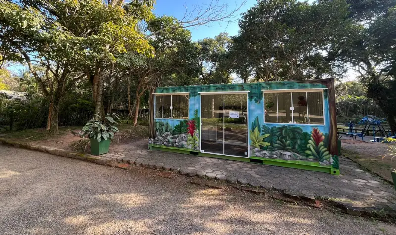 O container adaptado transforma-se em centro de referência para atividades ligadas à fauna e flora, em parceria com a Floram. A estrutura permite integrar ciência e participação social, funcionando como núcleo de apoio à educação ambiental no parque.
